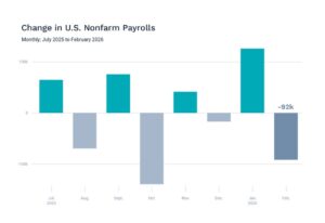 On the domestic front, the labor market delivered a surprising loss of 92,000 jobs, alongside a downward revision of the previously reported numbers for January. For professionals leading teams and managing departments, this indicates a broader labor market that is struggling to shake off the combined weight of AI disruption, tariff uncertainty, and ongoing immigration crackdowns.